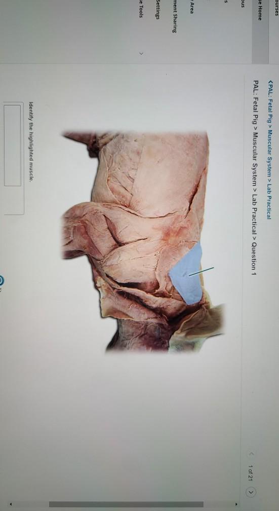 YOU MIGHT ALSO LIKE. Transverse abdominis Gluteus medius Post-Lab Questions 1. Proximal -- located close to the sagittal line of the body. The tube or cavity with its surrounding membrane and muscles that connects the mouth and nasal passages with the esophagus. Cardiac muscle - The heart consists largely of this muscle. Separated by the transverse plane. The maximus can be lifted up. Learn fetal pig dissection muscular system with free interactive flashcards. The skin is connected to the muscle layer below by a fibrous tissue.